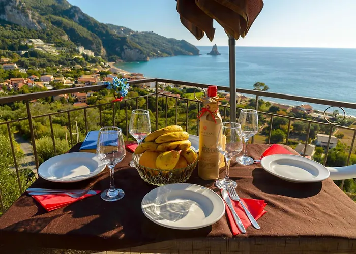 Het History & Folklore Museum of Messi Sinarades ligt binnen 10 rijminuten verderop, en het Strand van Pelekas is op afstand van 4 km van 8-slaapkamer Sunny Views Studios Agios Gordios te vinden.
